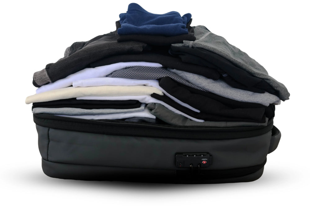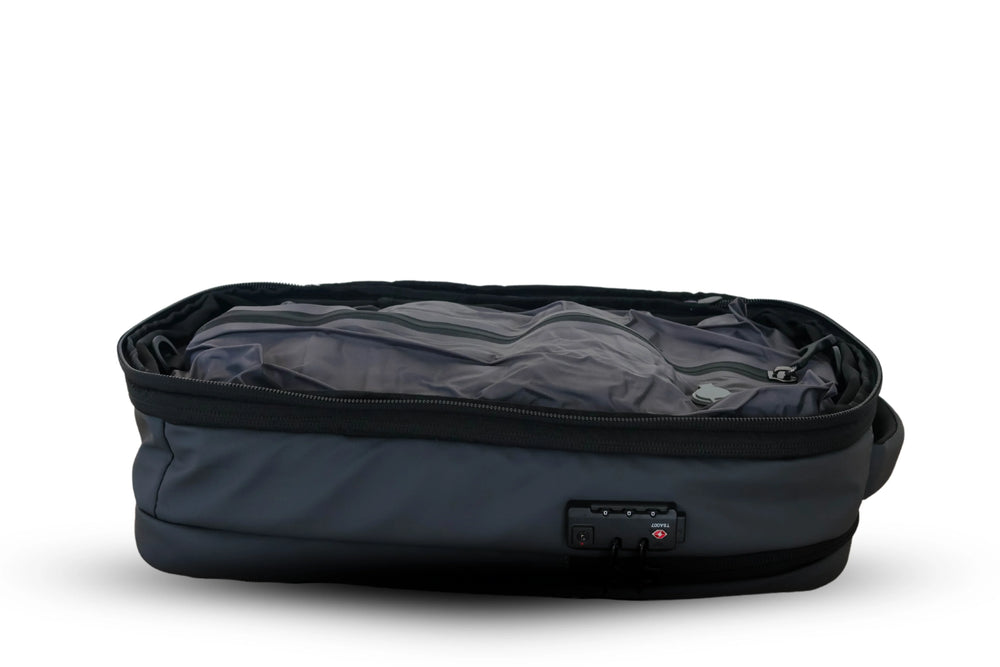 Travacは、ワンタッチ圧縮テクノロジーを搭載した次世代バックパック。かさばる荷物をスマートにまとめ、旅も出張も、もっと自由に。